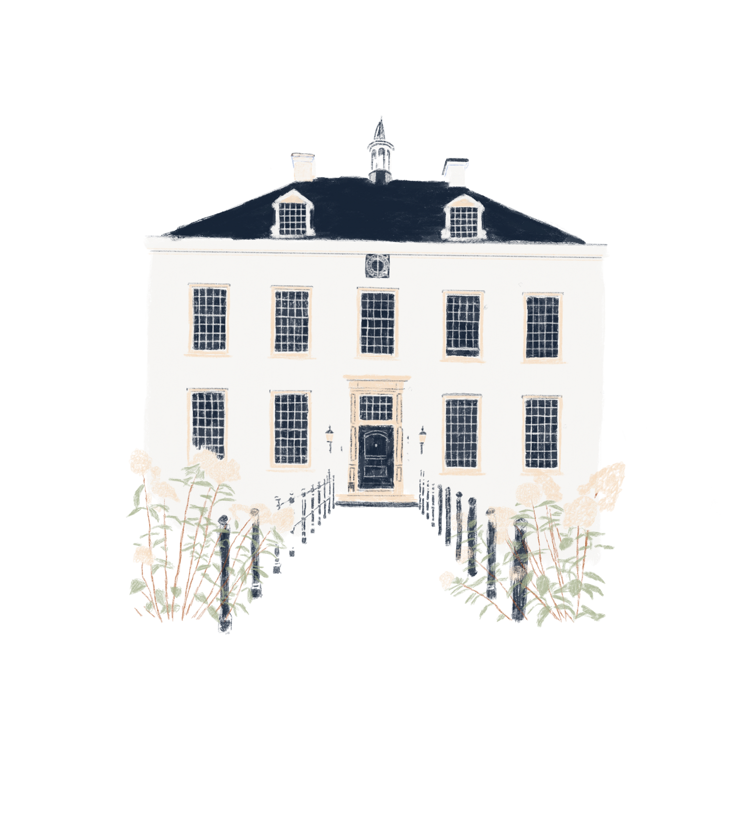 Ik kreeg de eer om illustraties te creëren voor een bruidskaartje, waarbij ik zorgde voor een afbeelding van het gebouw waar het huwelijk zou plaatsvinden en een portret van het bruidspaar met hun hond.